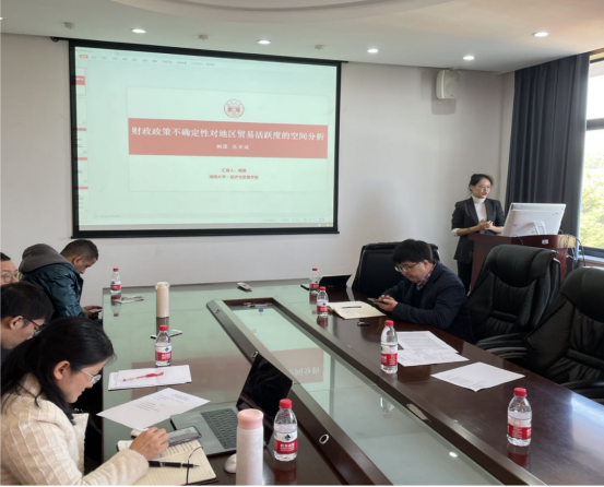 会后,多位老师和博士生围绕财政政策不确定性的测度、区域贸易活跃度的度量、不同作用机制的检验以及政策建议的提出等进行了热烈讨论和互动。