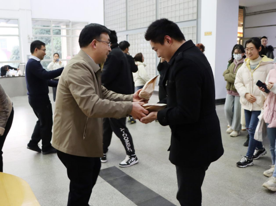 肖皓和李曼表示,考研是同学们步入下一个人生阶段的必经之战,同学们应当大胆尝试,在考场上展示自我、发展自我、成就自我。备考过程中的疲惫与困难要及时调整,以最佳状态迎战接考试,相信同学们的辛勤付出定能收获累累硕果。