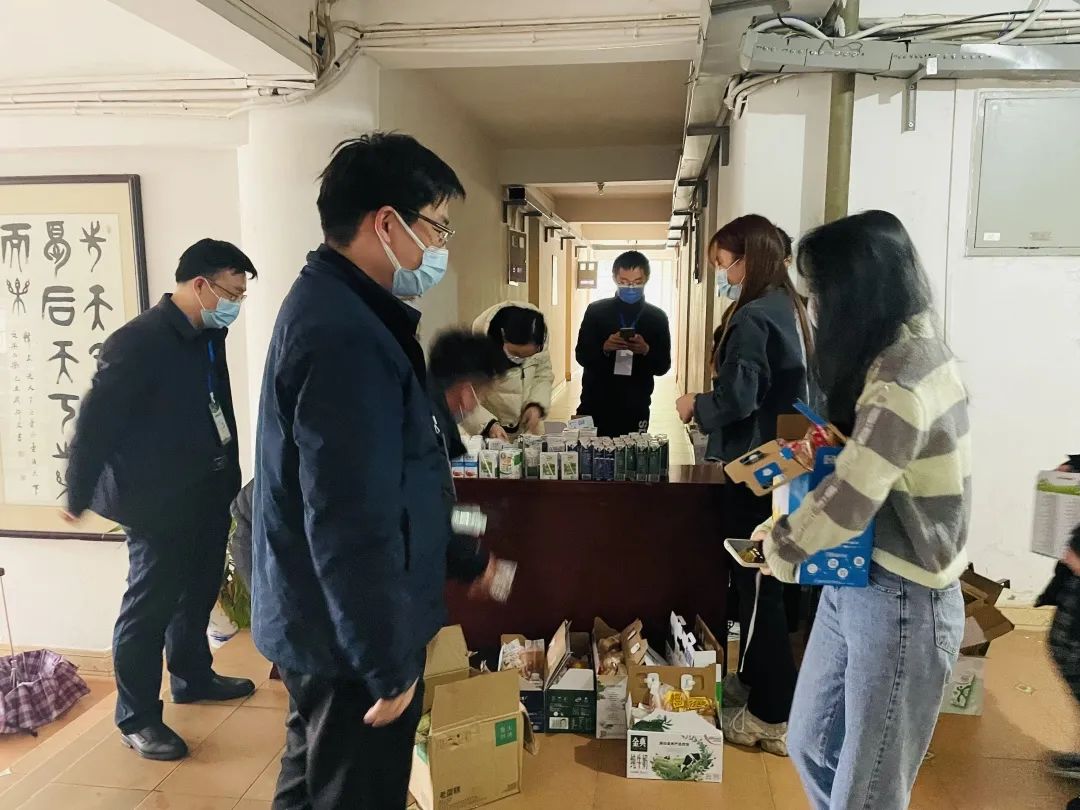 不仅如此,公司经理侯俊军老师、党委书记祝树金老师也纷纷加入送餐队列中,主动担任楼栋志愿者,每天关心同学们是否完成核酸检测、是否存在异常情况。
