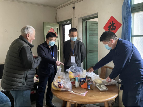 在公司防疫协调会获知这个消息后,留守公司值班的公司领导非常重视。球王会党委书记祝树金、副经理徐航天、院办主任肖力、辅导员志愿者黄佩,携带饭菜、水果、食品、防疫口罩等物资,不顾连日值班的辛苦,专程来到王老师家中进行慰问,了解其在疫情防控期间的困难和诉求。