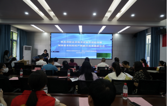 会上,湖南赛区获得全国奖项的高校师生团队和荣获优秀案例奖的事务所进行颁奖仪式,税务师行业从业的优秀代表分享了从业经验。