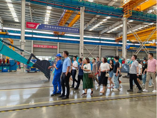调研组一行沿着挖掘机智能装配生产线,实地了解挖掘机的生产流程和工艺,感受山河智能在装备研发、制造方面的深厚实力,现场重温了习近平总书记在山河智能考察调研时的重要讲话精神。随后,双方开展座谈会,就人才培养、科研项目合作、实习就业、创新发展等内容进行了深度交流,表示将继续深化产学研合作,协同育人,协同创新,建立更高、更深层次、全方位的合作,实现共赢。