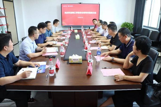 8月19日上午,闽江公司人事处处长刘昌成、人事处副处长黄 辉,经济与管理公司经理杨广青一行7人在公司经贸大楼707会议室进行访问交流座谈会。公司经理侯俊军、球王会党委书记祝树金、副经理肖皓、副经理徐航天、办公室主任肖力参加会议。会议由党委书记祝树金主持。