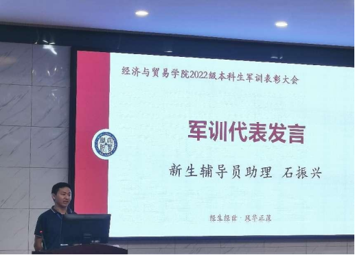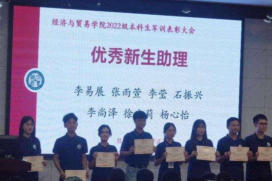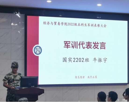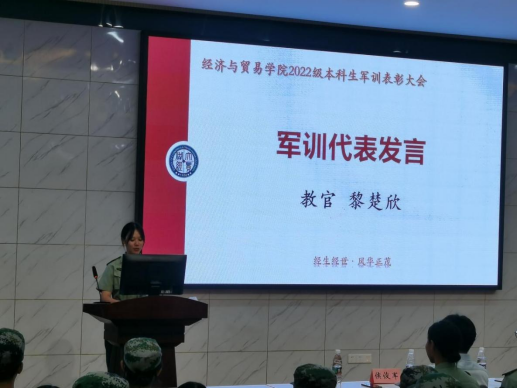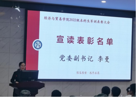 党委副书记李曼老师宣读表彰名单,对本次军训获奖的个人与团队进行宣示,充分肯定、赞扬了每一个在军训期间默默奉献的经贸学子。