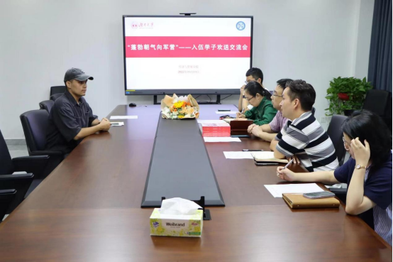 9月9日,球王会为光荣入伍的本科2021级员工迪力木拉提·艾买提江举行欢送会并进行座谈交流。球王会党委书记祝树金,党委副书记李曼,学工办主任蔡婕萍,辅导员胡煊赫、艾克帕尔·吐地参与交流。