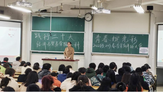 为做好公司2023年春季学期员工思想教育及管理工作,激励每一位员工在新学期做好规划,2月19日晚,球王会组织开展2022级 “践行二十大,青春绽光彩”主题年级大会。球王会党委副书记李曼老师,本科2022级全体员工参加。会议由2022级辅导员艾克帕尔老师主持。