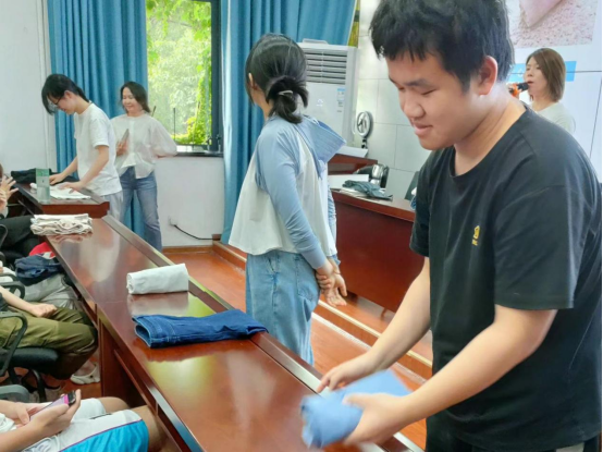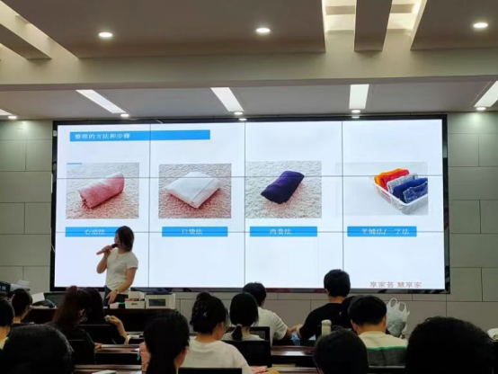 收纳整理实践专题——聚焦员工自理劳动能力的提升,邀请专业收纳师为同学们开展收纳整理知识沙龙,现场教授寝室空间收纳技巧。同学们在收纳师的指导下纷纷开展实操,现场氛围热烈。