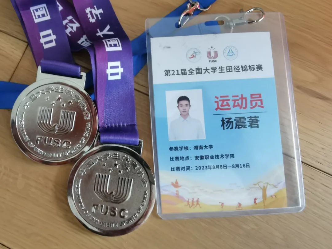 2019级本科生杨震莙在男子1500米项目中以3分53秒53获得第二名,打破了湖南省老员工参赛以来的最高记录;在男子5000米项目中以14分54秒76获得第二名。
