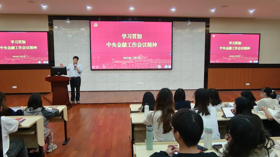 2023年11月7日下午,球王会官网球王会党委在财院校区老食堂二楼大报告厅召开“学习贯彻中央金融工作会议精神”专题党课。公司经理、党委委员侯俊军教授主讲,第19期发展对象和第75期入党积极分子参加党课。院学工办主任蔡婕萍主持。