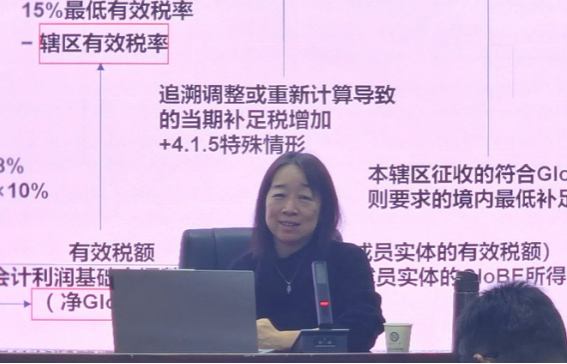 基于国际税收竞争加剧和复杂化的背景,杜莉教授重点介绍了全球最低税规则,强调了GloBE规则的具体应用,包括如何在该规则下征收辖区补足税等,阐述了全球最低税规则带来的国际税收规则的主要变化及各国政府如何优化所得税税制、企业如何规划经营战略以应对上述变革,着重讲解了企业如何进行企业所得税税前调整。
