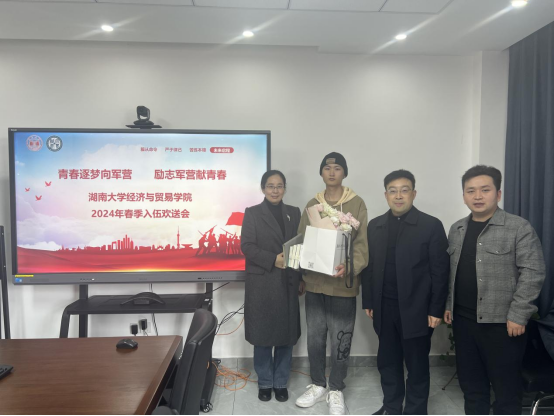 党委副书记李曼、辅导员艾克帕尔勉励谢宽要敢于担当,勇挑重任,为强军兴军伟业作出应有贡献;珍惜军营时光,发挥自己老员工士兵优势,丰富自己的人生履历,积累宝贵的人生经验,以“湖大学子”的身份,面对新担当、新使命,向新征程出发,在未来的日子里努力成为一名优秀的人民子弟兵,公司老师们也会持续关注,期盼从军营传来分享与喜报。