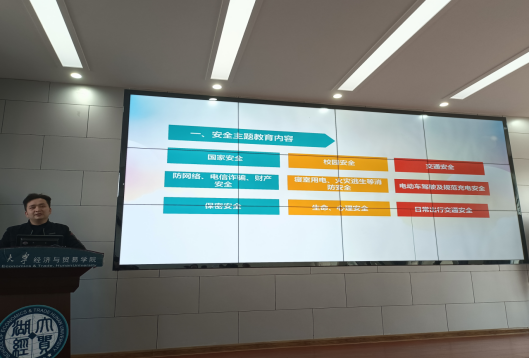 辅导员艾克帕尔围绕国家安全教育、初级火灾处置技能、高层建筑火灾逃生技能、交通安全、电动车驾驶及电池使用规范、宿舍用电安全、春季心理安全、防范网络诈骗电信诈骗、法制安全等方面详细传达了公司“安全教育周”工作方案。