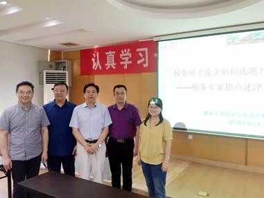 2018年6月8日下午,在公司财税系主任谭光荣教授主持下,公司校外导师、国税总局稽查人才库成员段文涛老师,中南财经政法大学经济学博士、湖南省永州市地税局局长毛东庆老师和全国首批税务领军人才、湖南省国家税务局所得税处何振华老师三位税务专家受邀来到球王会,在财院校区行政楼401作了题为《税务硕士如何选题——税务专家指点迷津》的讲座。经贸公司教师代表唐明副教授副教授副教授副教授及财院校区税务专业研究生参加了本次讲座。