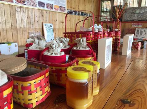 通过与“花瑶花”文创基地的负责人交流,调研小组了解到“花瑶挑花”为手工制品,主要为衣服或围裙,其上图案主要是以“马”、“龙”、“猫”等动物为主。创作人员主要是村里60岁以上的老年妇女,从事人员规模约400-500人。据了解,手工花瑶挑花制品需要耗费大量的时间与精力,以围裙为例,完成一个手织围裙需要大约38万针,耗时约6个月。“花瑶挑花”变现的形式主要是放置在大米包装上,与大米一起搭配出售。“呜哇山歌”以前是瑶族人民劳作时的劳动号子,如今作为农家乐篝火晚会重要组成内容为村里带来收益。公司也一直致力于将花瑶花文化与产品的有机结合,设计了大量的文创产品。
