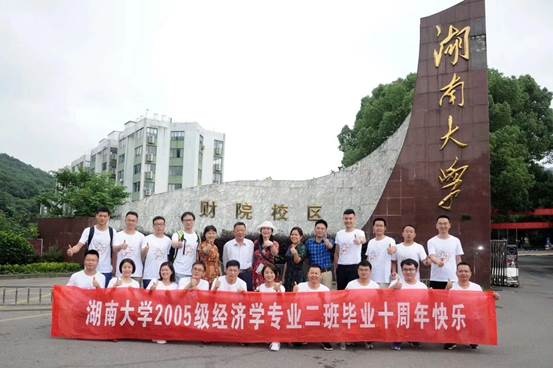 上午10:40,2005级经济学2班毕业十年师生座谈会在行政楼617进行,2005级辅导员周梦老师、原主管员工工作副书记高近成老师、王良健教授、钱晓英教授、罗丽英老师本科低年级员工代表出席会议。座谈会在同学们自制的一个小视频中拉开序幕,大家感叹着十年间各自的变化,也分享着相聚的喜悦。全班32位同学共来自祖国30个省市地区,毕业后又各奔东西。到场同学依次做个人情况介绍,同时表达自己对公司、恩师和同学的祝福。作为2005级辅导员,周梦老师与同学们回忆了过去发生的点点滴滴;王良健教授、钱晓英教授、罗丽英老师也纷纷谈起往事。高近成老师向同学们表达自己的诚挚祝愿,希望同学自信乐观、身体健康、工作顺利,并且常回公司看看。同学们深受感动。现场有员工提出以班级名义建立公司奖学金,用以资助奖励本院员工,帮助员工成长成才。随后同学们与老师们共进午餐,并集体前往岳麓书院进行参观。