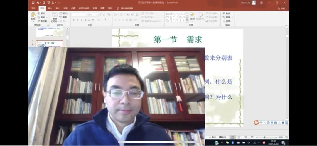 对于同学们的学习效率问题,刘老师直言,直播只是换了一种上课的形式,仍是正常的上课;但对部分学习上需要督促、上课时易做小动作的同学而言,直播上课的效果很可能就不尽人意了。这同时也是网络授课模式无法解决的一个困扰。对此,刘老师想说:“但是大家都是老员工了,并且家里可能还有弟弟妹妹,哥哥姐姐,爸爸妈妈,所以我假定大家的学习态度是一个老员工的学习态度,而不是一个小员工的学习态度。我深信我们的老员工是自觉的,而在这样一个老员工都能够认真努力的进行学习的假定下,我倾向于认为直播课的效果非常好。”虽有所担心,但刘老师还是对员工的自律性抱有一定信心。
