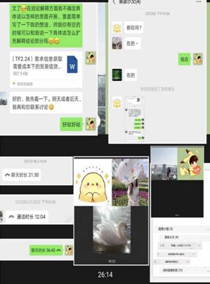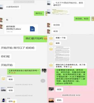 在此次“超长假期”中,团队成员在曹二保老师的带领下,进行了常态化的小组研讨(2-3人/组),团队成员每日相互督促、勉励,均能够在假期中静心科研,因此在党员交流沟通环节,各位党员结合自身实际情况,分别就居家防控期间学术、学业、生活的内容进行了交流沟通。研三党员刘岚茜同志提出寒假时间面临着论文撰写与毕业的压力,通过与曹老师语音通话等方式沟通论文进展,目前论文已经成功提交,问题已经得到了解决。陈光智同志提出延迟开学可能会影响出国深造手续的办理,在时间协调上较为困难,但是作为一名共产党员,会严格遵守公司的规定,在家做好防护,不提前返校,静心等待开学通知。研二党员张慧媛同志提出在家学习过程中通过语音通话、视频通话及时与同门沟通可以解决项目书写信息不对称的问题,使用曹老师推荐的Sci-hub网站解决了下载外文文献不流畅的问题,目前可以高效的进行项目书写。研一党员张正华同志提出居家学习期间较为充实,一方面使用Forest App帮助自己提高网课学习效率;另一方面与同门之间交流沟通学术进展督促自己潜心科研。