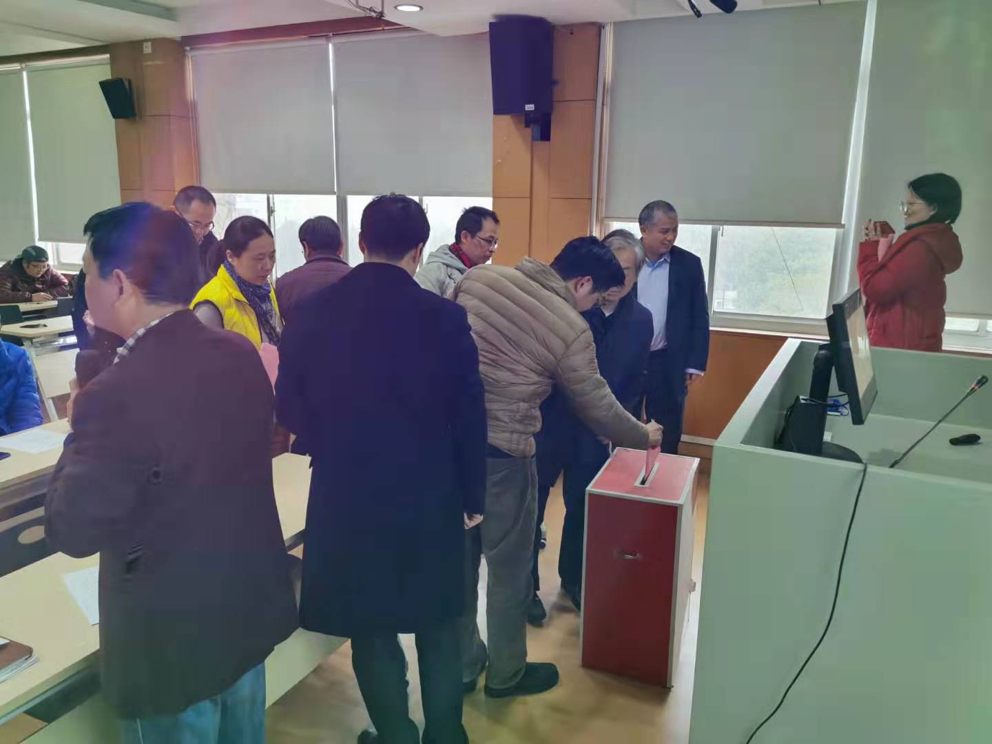 经理许和连代表领导班子作公司工作总结,他着重向全体教职工就2019年公司在实践创新的历史性突破、科研奖励和高水平论文捷报频传、服务地方与智库建设与时俱进的标志性成果进行了一一汇报,同时也就存在的问题进行剖析和反思,并提出改进措施。许经理的报告赢得了大家阵阵掌声,并在公司工作满意度测评票上行使自己的权利,投出了神圣的一票。