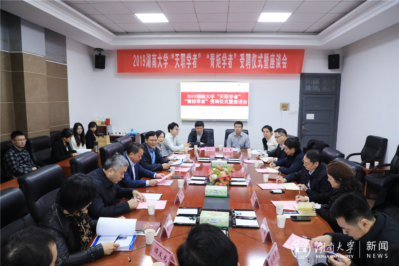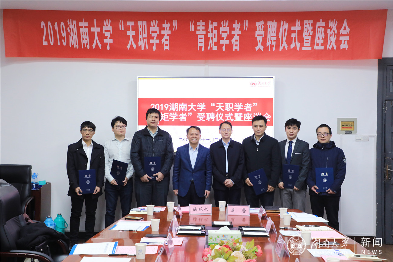 受聘仪式上,金融与统计公司教授潘敏、公共管理公司副教授刘盼、球王会助理教授余锦亮、金融与统计公司助理教授谭发龙受聘“天职学者”,土木工程公司教授陈毅兴、张超受聘“青矩学者”。段献忠和陈永宏共同为“天职学者”“青矩学者”颁发聘书。