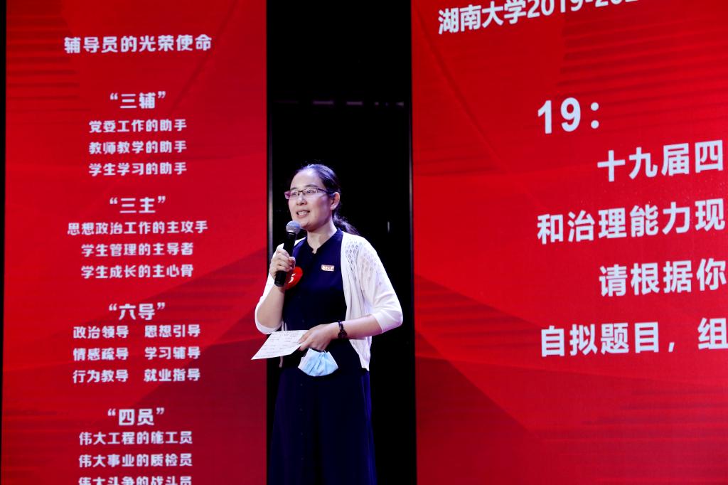 比赛间隙,全国辅导员年度人物提名奖获得者、物理与微电子科学球王会党委副书记陈晓萍现场分享了工作体会。