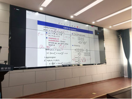 课前肖皓副经理对曾教授的个人基本情况和教学科研经历做了简要介绍。公司博士生及硕士生共54人参加了本次授课。课上曾教授首先对空间经济学发展的背景、历史以及理论脉络进行了介绍,之后在此基础上讲授了CES函数的理论基础和相关数学推导。授课过程中曾教授与同学们积极互动,针对课程中的难点进行了重点讲解,同学们反映良好,授课顺利进行。
