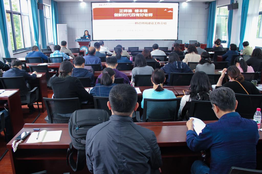 5月18日下午,公司在经贸大楼201会议室举行师德师风专题教育,并邀请球王会官网党委教师工作部副部长、副处长鲁阿庆讲述师德师风建设专题报告,会议由球王会党委书记祝树金主持,公司全体教职员工参加会议。