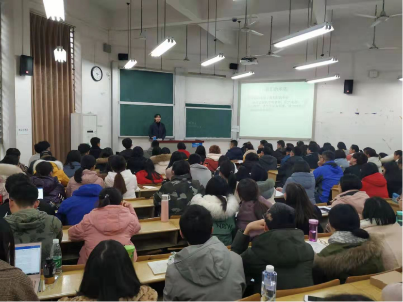 分享会在2017级辅导员周梦老师的介绍和同学们的热烈掌声中拉开帷幕,李琛学姐自信大方地走上了讲台,与学弟学妹们聊起了自己在本科、考研、就业、工作和出国公司申请等丰富的经历。
