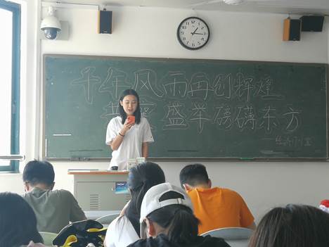 最后,班会在“我和我的祖国”的全班大合唱中圆满落下帷幕。这次班会不仅使同学们对祖国发展历程有了更加深入全面的了解,同时也坚定了同学们的理想信念。相信他们在未来一定会成为祖国的栋梁,不负民族的期望!