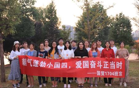 为庆祝建国70周年,进一步加强同学们爱党爱国的热烈情感。2019年9月27日下午四点半,国贸1704班在班委的带领下,举办了以“爱国奋斗正当时,建功立业新时代”为主题的团日活动。