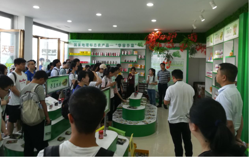 接着,实践团去到了三封寺镇惠农服务中心。讲解员在服务中心向同学们介绍华容芥菜的“前世今生”,同学们了解到华容芥菜作为国家地理标志农产品,如今以更为多样的面貌出现在大众面前——老坛酸菜、芝麻芥菜、肉末酸菜自热面、肉末酸菜自热饭、开胃芥菜、芥菜调味包等等,目前华容芥菜主要表现为“即食”商品。同时,讲解员也跟同学们介绍到华容芥菜的销售已经与电商接轨,华容芥菜企业正积极与淘宝、天猫、京东等各大电商平台合作,不断寻求更大的知名度和更广阔的市场。