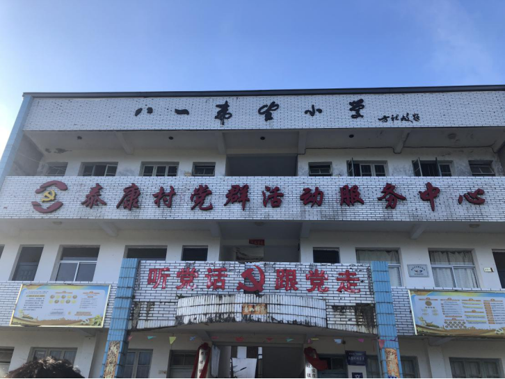 第二站,实践团来到了泰康村八一希望小学进一步学习,较为破落的小学期已经长满了杂草,仿佛沉淀着当年的故事。刘希华书记介绍到,泰康村八一希望小学是中国第一批的八一希望小学,由中国人民解放军一角一分、自掏腰包捐献出来的,希望小学的建立给当地村落教育发展带来了希望,承担了培养青少年的重要历史责任。由于近年来大量年轻人外出务工,公司仅存有1名教师,4名员工,再过一段时间,可能就会关停。在阳光的照耀下,小学教学楼的墙壁显得有些陈旧,但八一精神却随着太阳熠熠生辉,这里的一砖一瓦无不激励着实践团的同学们将小我融入大我,将青春献给祖国的理想抱负。