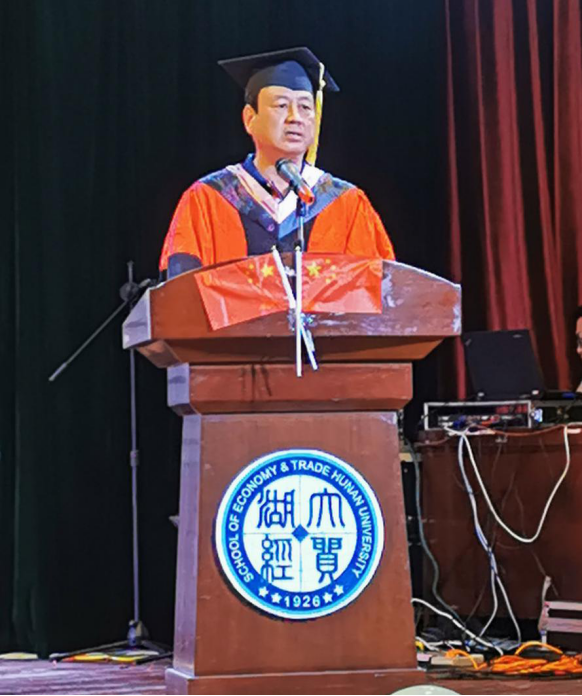 学位授予仪式在宏伟的国歌声中拉开序幕。首先,由经理许和连教授致辞,他从四个方面对毕业生表达了殷切希望:“经世致用,希望同学们始终怀有家国情怀;志存高远,希望同学们树立远大的理想;厚德载物,希望同学们德业双修德才兼备;厚积薄发,希望同学们坚持不懈踏实前行。”他深情寄语“鹰隼试翼,风尘翕张”八个字,并向每一位毕业生献上诚挚的祝愿,祝福所有经贸毕业生能够不忘初心,创造辉煌!
