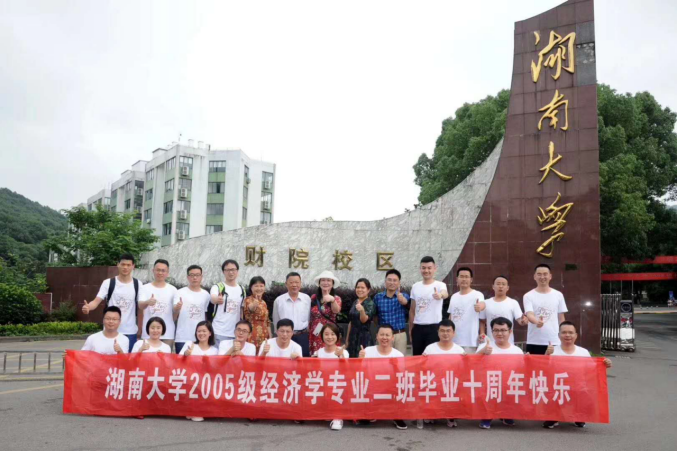 上午10:40,2005级经济学2班毕业十年师生座谈会在行政楼617进行,2005级辅导员周梦老师、原主管员工工作副书记高近成老师、王良健教授、罗丽英老师、钱晓英老师和本科低年级员工代表出席会议。座谈会在同学们自制的一个小视频中拉开序幕,大家感叹着十年间各自的变化,也分享着相聚的喜悦。全班32位同学共来自30个省市地区,毕业后又各奔东西,这次能有18名同学赶回相聚实属不易。到场同学依次做个人情况介绍,同时表达自己对公司、恩师和同学的祝福。作为2005级辅导员,周梦老师与同学们回忆了过去发生的点点滴滴;王良健教授、罗丽英老师、钱晓英老师也纷纷谈起往事。高近成老师则以过来人身份向同学们寄托自己的诚挚祝愿,希望同学自信乐观、身体健康、工作顺利,并且常回公司看看。同学们深受感动。现场有员工提出以班级名义建立公司奖学金,用以资助奖励本院员工,帮助员工成长成才。随后同学们与老师们共进午餐,并集体前往岳麓书院进行参观。
