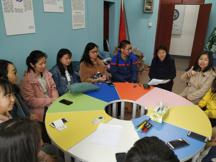 2019年4月4日中午,经贸院2017级辅导员周梦老师针对五四评优工作在行政楼608召开年级干部大会。